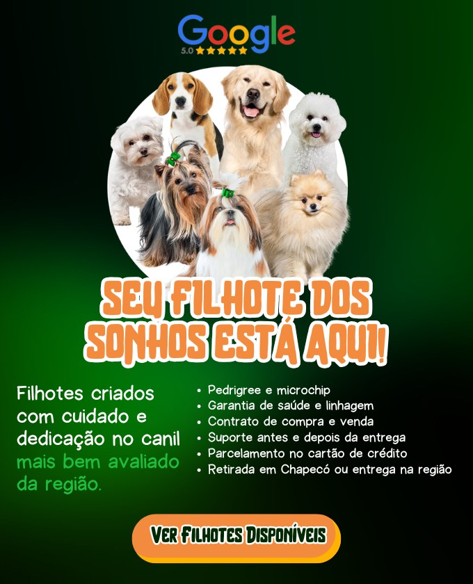O Canil Casa dos Cães Chapecó nasceu da paixão genuína por criar e desenvolver cães de raça com responsabilidade e dedicação. Nosso propósito é simples: possibilitar que cada vez mais famílias sejam completadas com cães lindos, saudáveis e felizes.